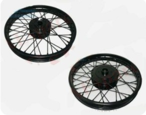 THIS IS A SET OF 40-SPOKE BLACK POWDER-COATED MOTORCYCLE WHEEL RIM WITH HUB,DESINGNED FOR A ROYAL ENFIELD CLASSIC MODEL